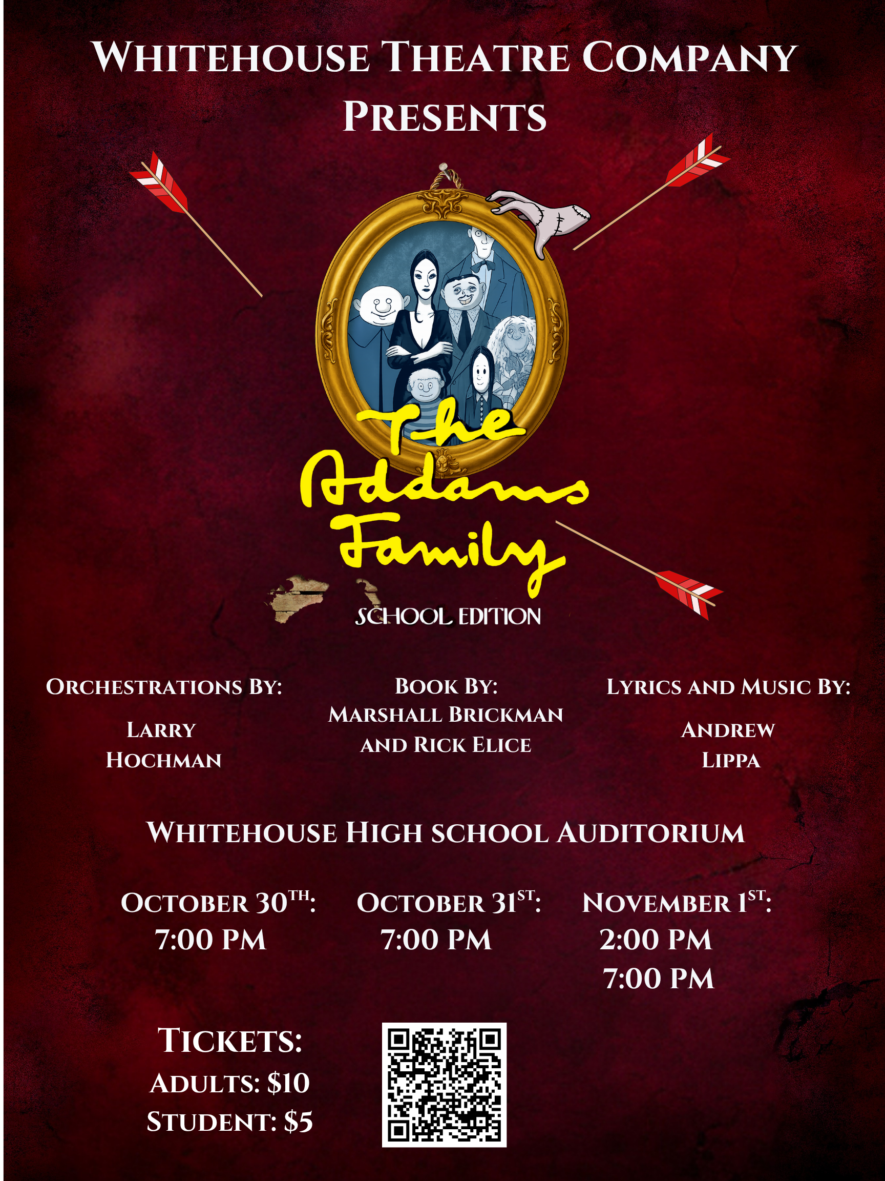 We have a couple of exciting events taking place this evening. The Whitehouse Theatre Company opens its production of The Addams Family tonight at 7:00 p.m. in the WHS Auditorium. If you can’t make it tonight, there will also be performances on Friday and Saturday.